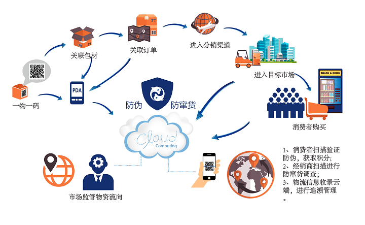 基于北京星漢一物一碼技術(shù),利用物聯(lián)網(wǎng)、大數(shù)據(jù)、云計算等先進(jìn)手段,讓用戶對于追溯系統(tǒng)已經(jīng)完成了從陌生到熟悉的轉(zhuǎn)變。在產(chǎn)品上應(yīng)用一物一碼,為每一件產(chǎn)品建立唯一的 "身份證",讓產(chǎn)品生命周期有跡可循,就可以實現(xiàn)產(chǎn)品的防偽防竄貨管理。